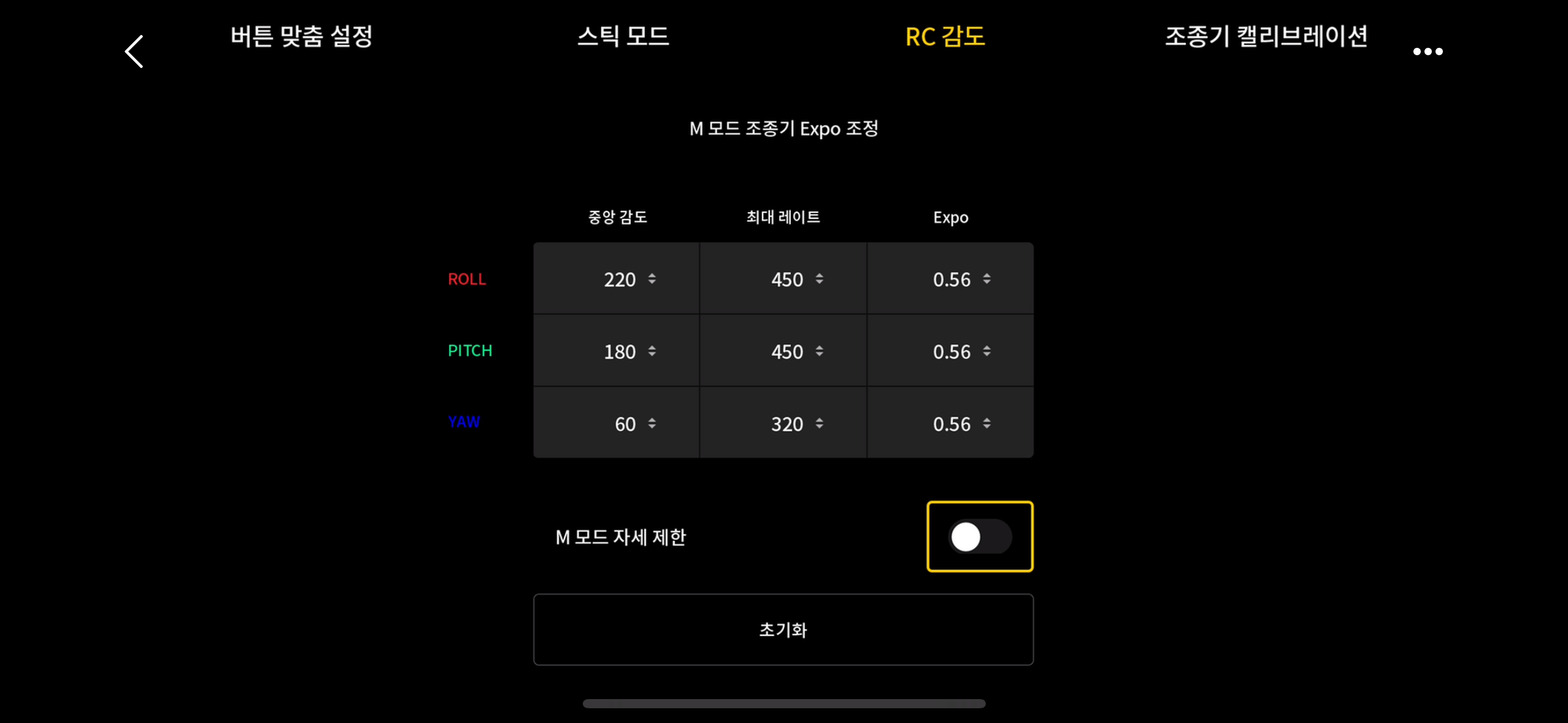 RC 감도에서 M모드 자세 제한을 해제하자
