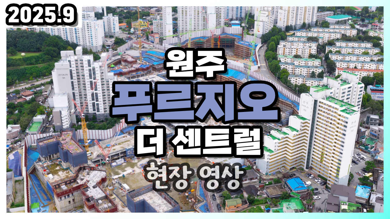 (2025년 9월) 원주 푸르지오 더 센트럴 현장 드론 영상 월별 비교 단지 동호수 배치도